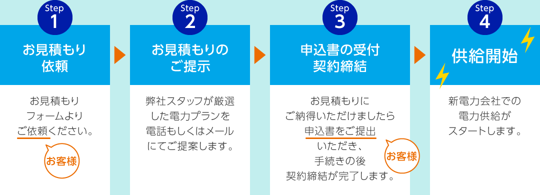 経験豊富なプロが契約完了までサポートいたしますので、初めて電力を切り替えるお客様もご安心してお任せください。