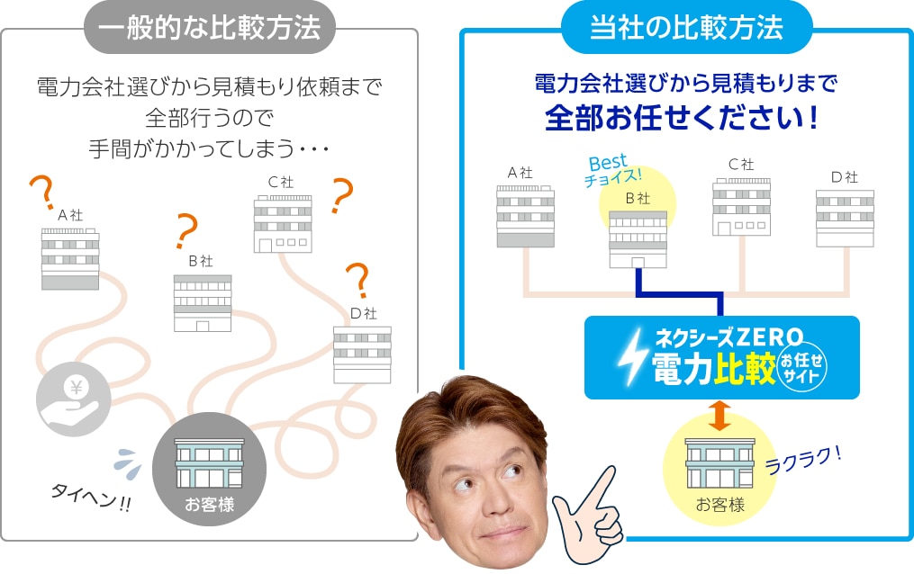 電力会社各社の中からお客様にとって最もお得な料金プランをご提案します。