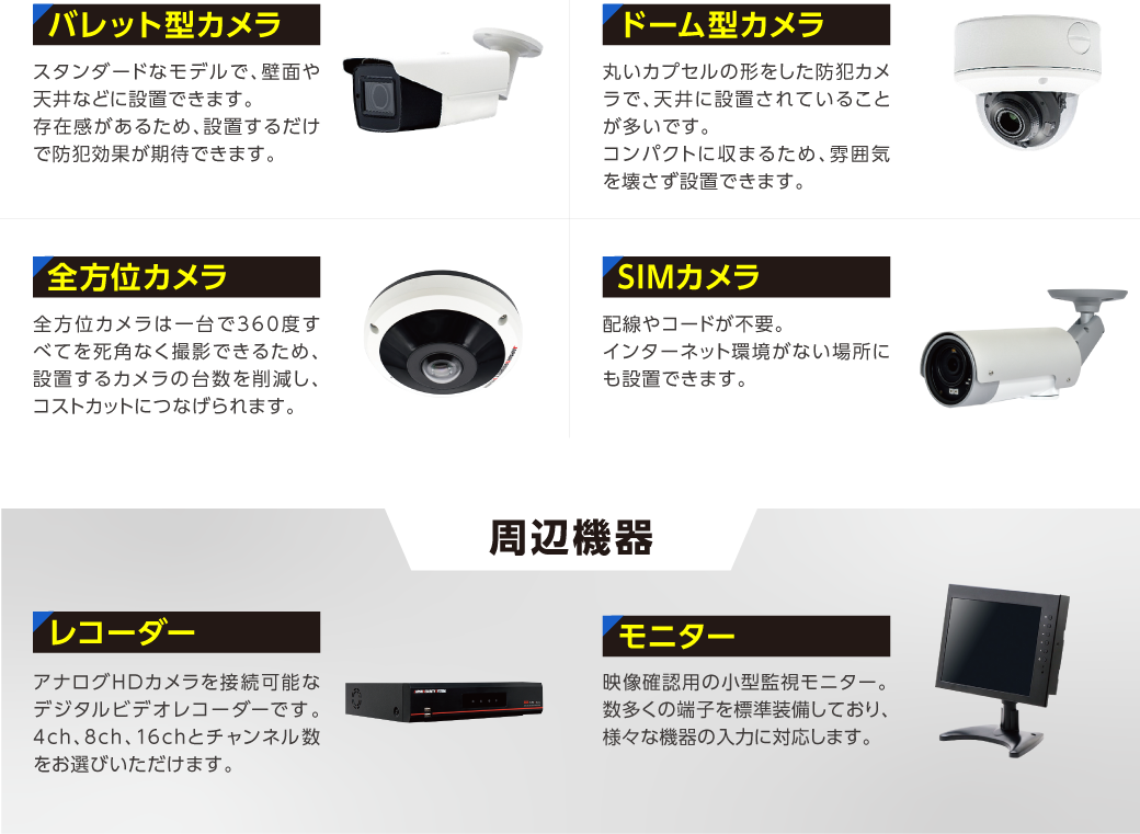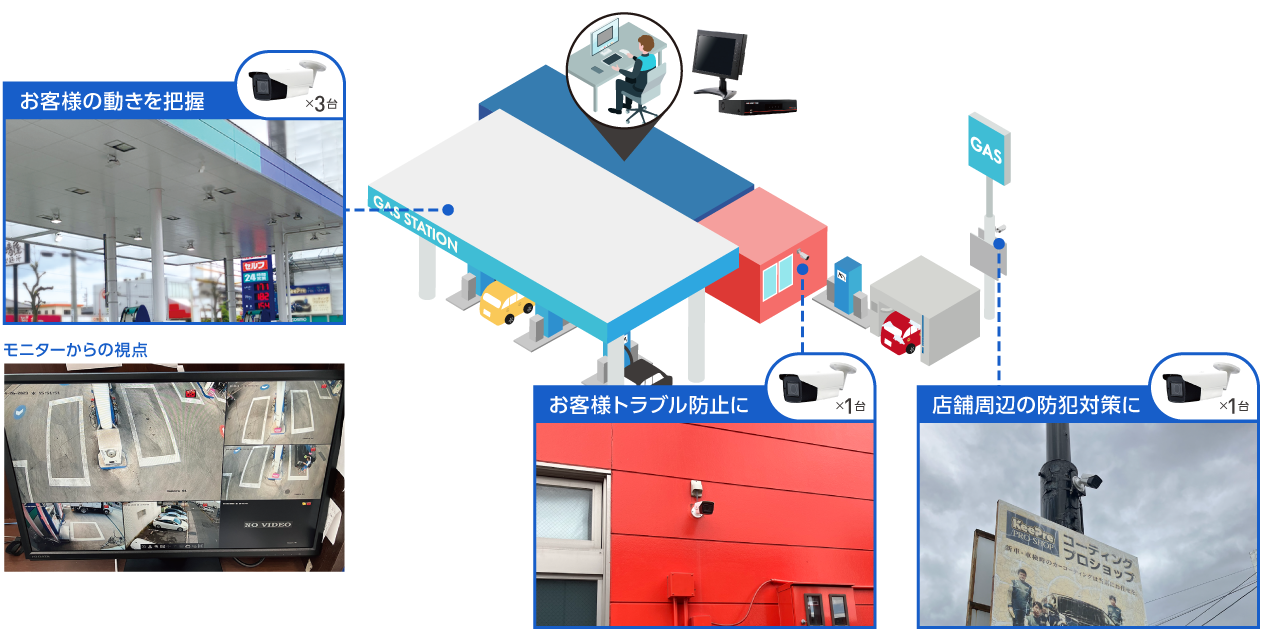 防水・防塵のカメラを取り扱っているため、店舗の出入り口や駐車場など雨に濡れる場所への設置も可能です。